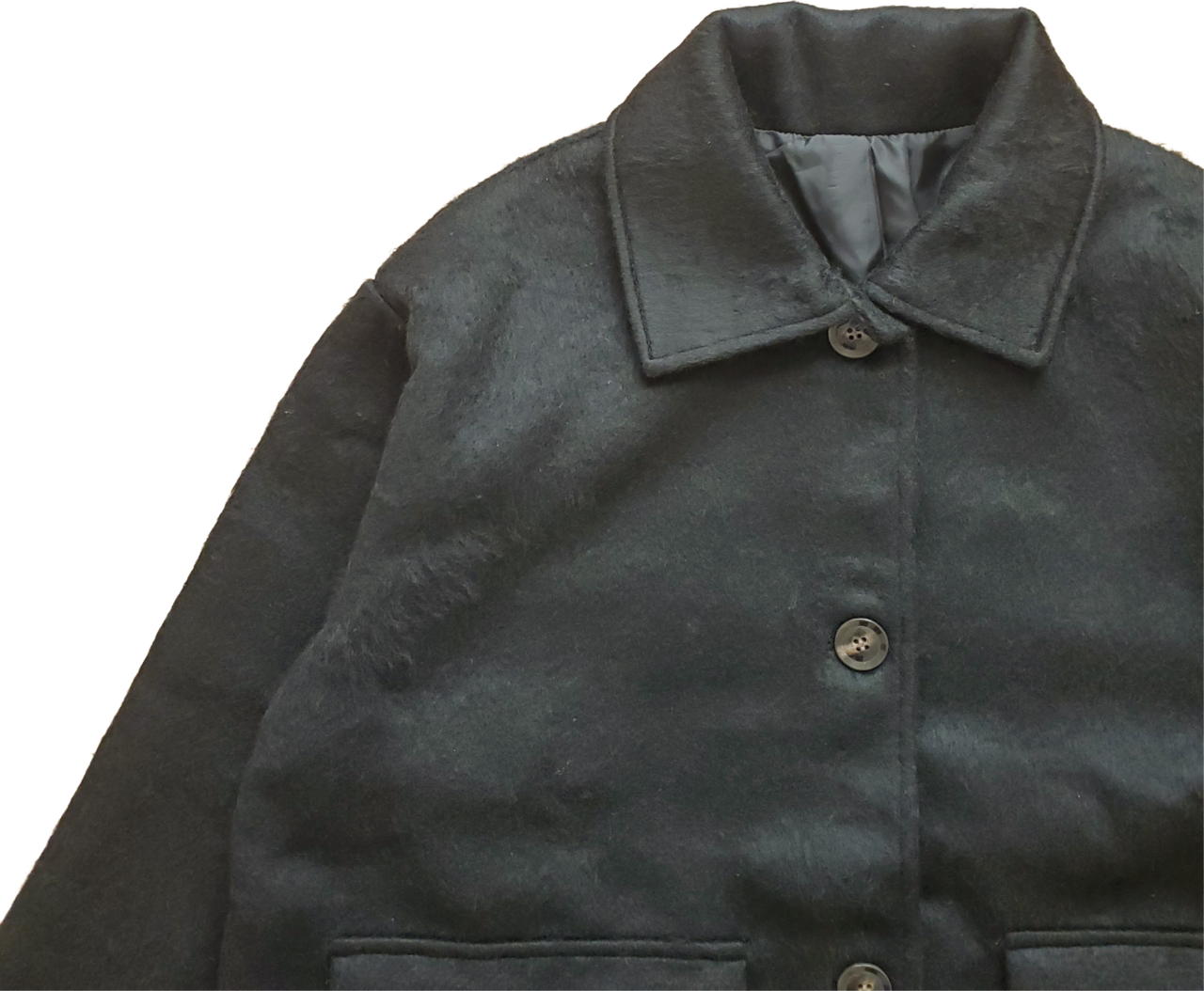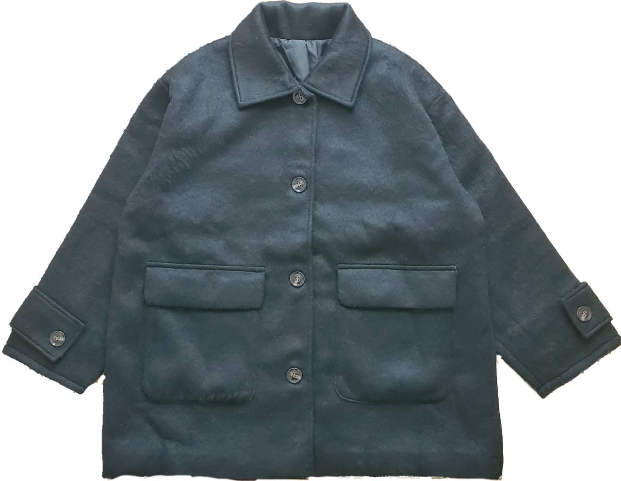 左右に大きめポケットがついた、ベーシックでゆったりとしたシルエット。普段使いから特別な日まで、さまざまなスタイルに合わせやすく、お尻まで隠れる丈感で防寒も◎