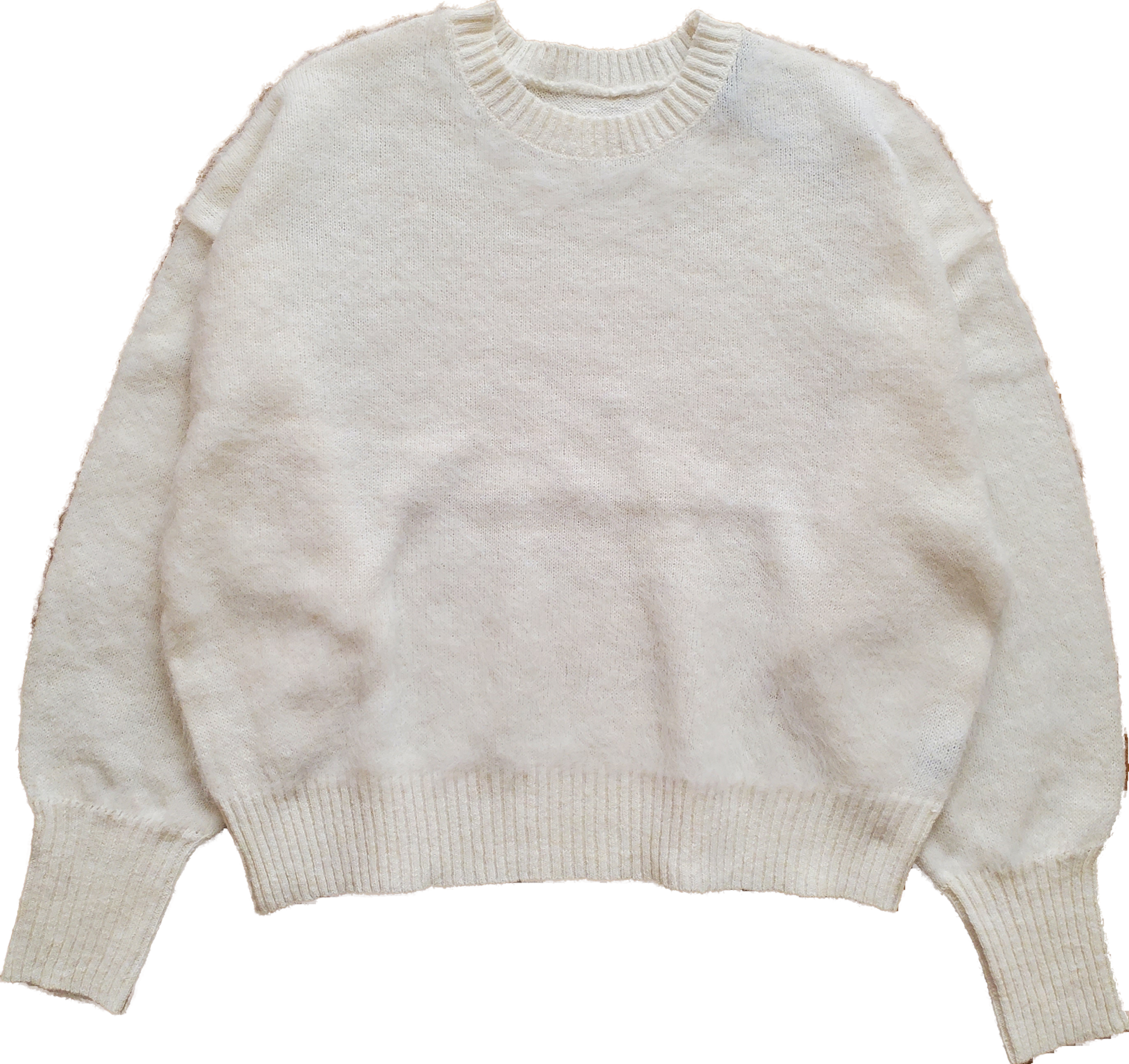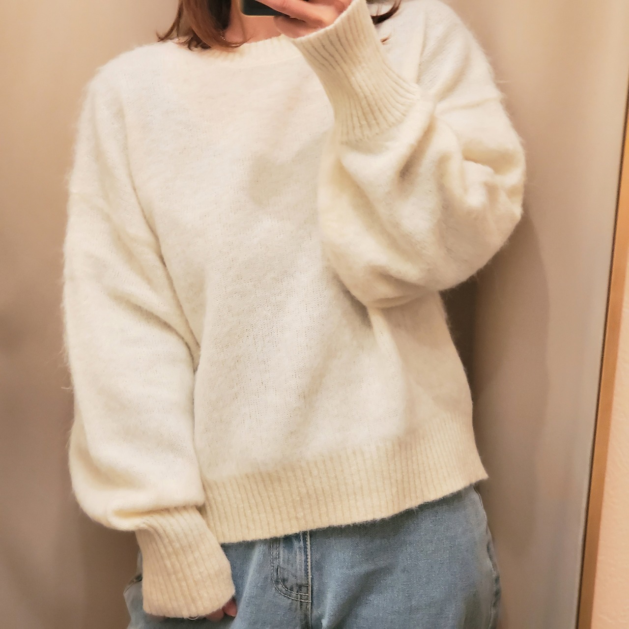 モヘアで仕立てたクルーネックニットは、冬のスタイルにマッチする、シンプルながらも使い勝手のいいアイテム。