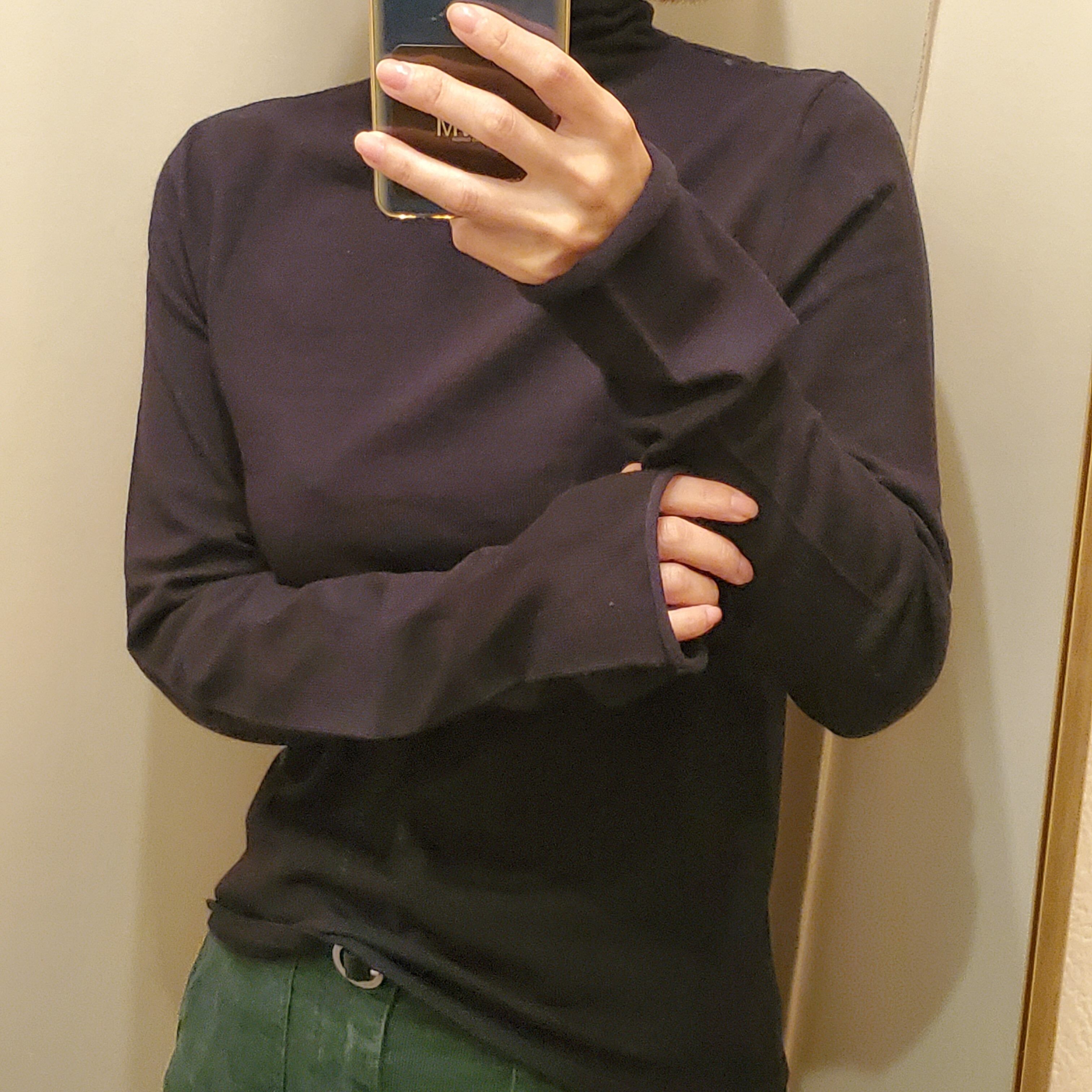 袖は切りっぱなしデザインでサムホール付きのロングタイプ
