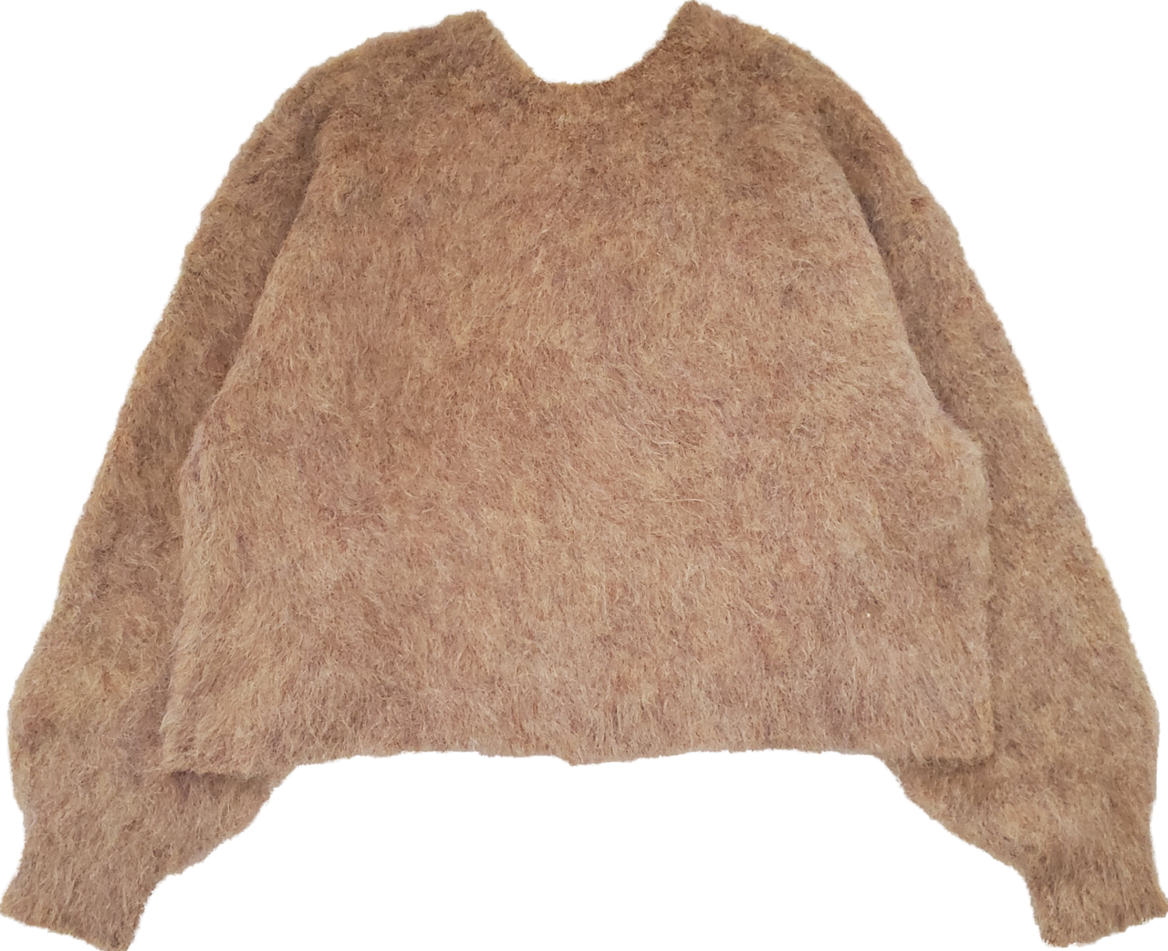 前後で楽しめるデザインで、杢感のあるニット生地は、温かみと柔らかな印象を演出します。